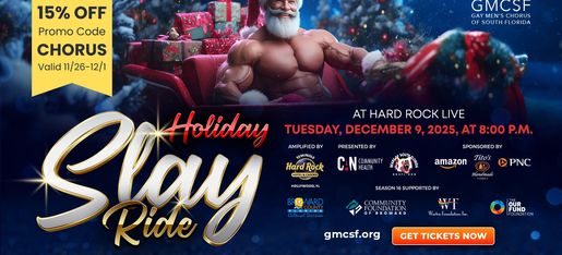 The Gay Men's Chorus of South Florida, Inc. (FEIN #27-3533074) is a nonprofit 501(c)(3) corporation. Contributions are tax-deductible to the full extent of the law. A copy of the official registration and financial information may be obtained from the State of Florida Division of Consumer Services by calling toll-free (800-435-7352) within the state. Registration does not imply endorsement, approval, or recommendation by the state. If you would prefer not to receive mail from us, please call (954) 763-2266 or by email.